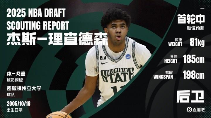 杰斯-理查德森(1米85后卫,19岁,密歇根州立大学)