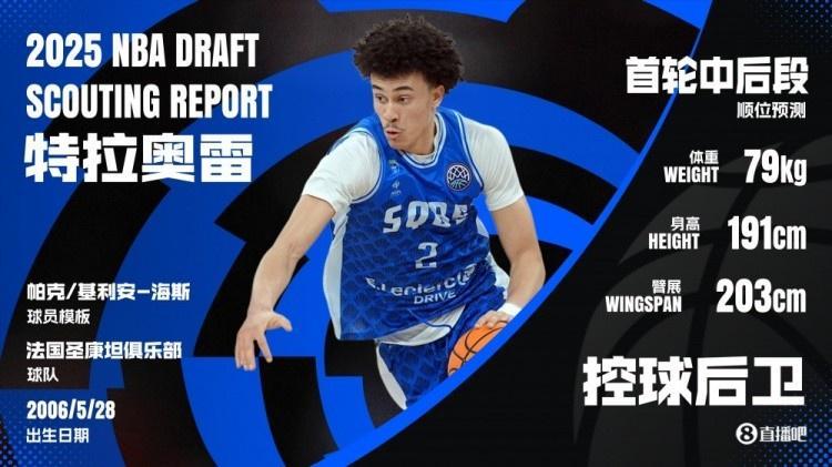东部联盟高管2号:“他去年整个夏天都没休息,直接撞上新秀墙。被法国国家队征召备战奥运会时,有人可能误导了他。因为赛季末的爆发,他真以为自己能入选最终名单,为此拼尽全力。但明眼人都看得出阵容里根本没他位置,落选国家队后他彻底怒了,紧接着就被安排到法国一级联赛,完全没喘息期。赛季初猛如虎,后来就蔫了。最倒霉的是状态低谷正好赶上NBA巴黎赛期间,所有球队高管那两周都在巴黎进进出出,结果全撞上他表现最糟的时候。但现在再看,这孩子1米91的体格不错,传球视野绝佳。必须多练左手,现在过度依赖右手,球队已经在做针对性调整。一旦给他自由发挥的空间,天赋就藏不住了,转换进攻尤其犀利,能投篮但非神射手。预计会在首轮第20顺位左右被选中,这个区间对他来说很合适。生涯初期会是个优质替补,相比其他年轻后卫更成熟,毕竟职业联赛经验丰富。不过我不确定他的进取心是否足够,想在NBA立足必须有点杀手本能,他好像缺这个。耐克巅峰赛那次确实超神发挥,但平时比赛缺少那种‘我要打爆你’的气场。”
