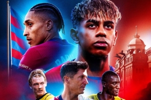 北京时间4月10日3点,欧冠1/4决赛首回合,巴萨主场对阵多特,巴萨发布海报预热本场比赛,莱万、亚马尔、拉菲尼亚、布兰特、吉拉西出镜。