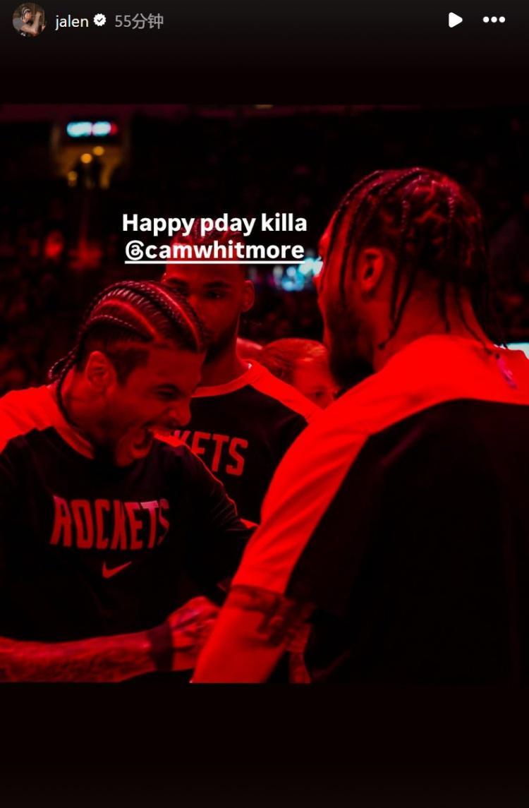 前队友杰伦-格林在INS转发了两人的合照,并写道:“祝你生日快乐,杀手惠特摩尔。”